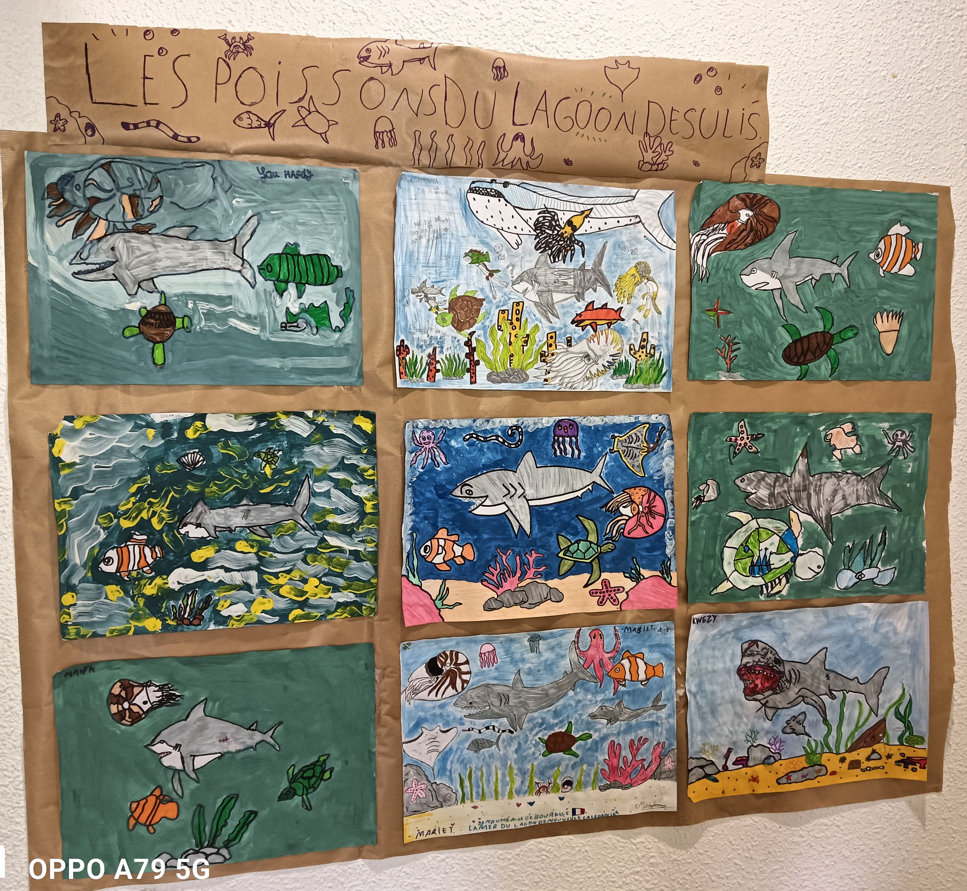 Les poissons du lagon dessinés par nos élèves du dispositif ULIS encadrés par leur coordonnatrice Nadine Froment et leurs AVS