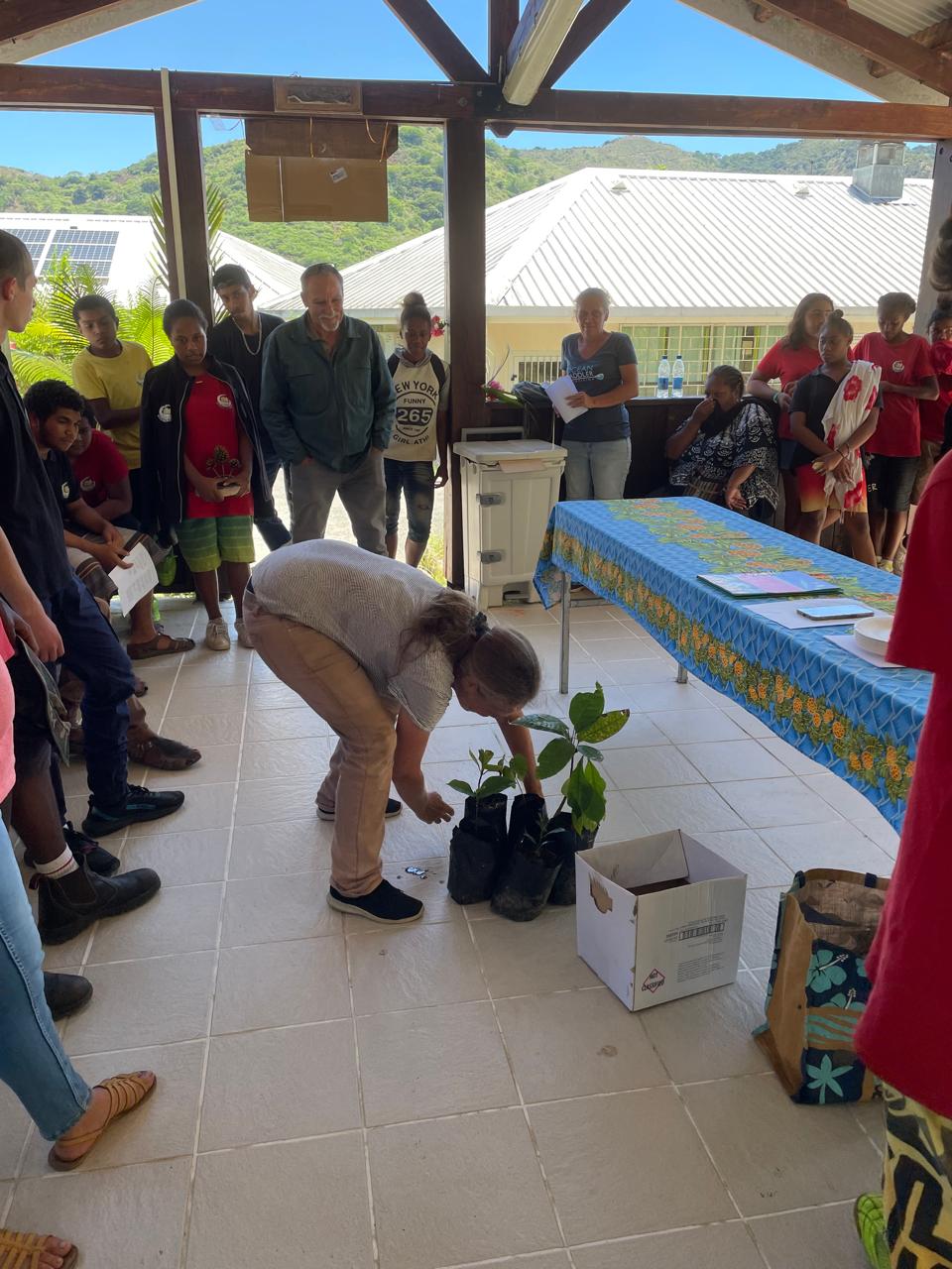 Des chants, de la musique, des gâteaux et des cadeaux offerts (de belles plante, café, cacao..) par ses anciens élèves de Ny, Saraméa, la Foa.